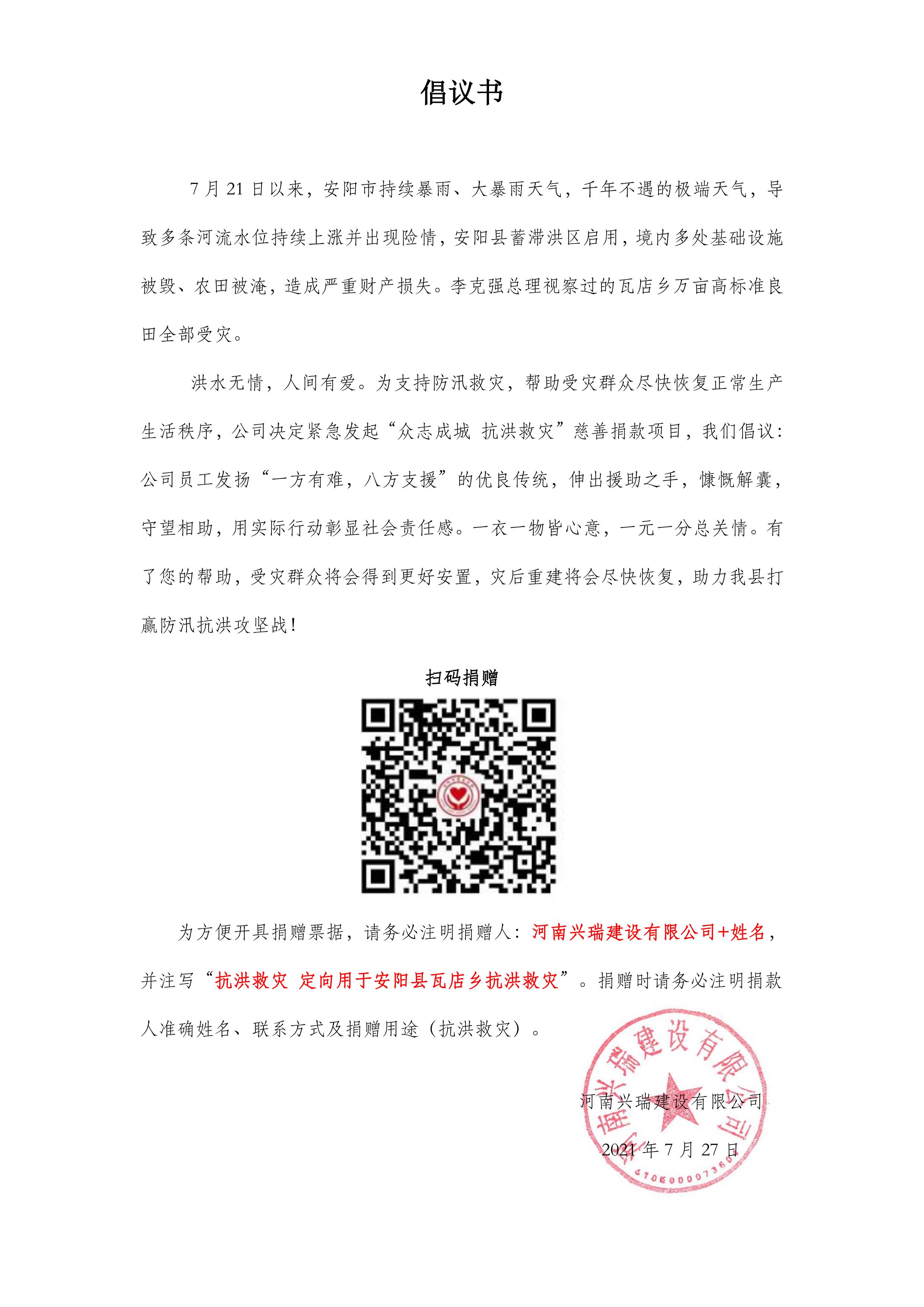 抗洪救災(zāi)捐款倡議書