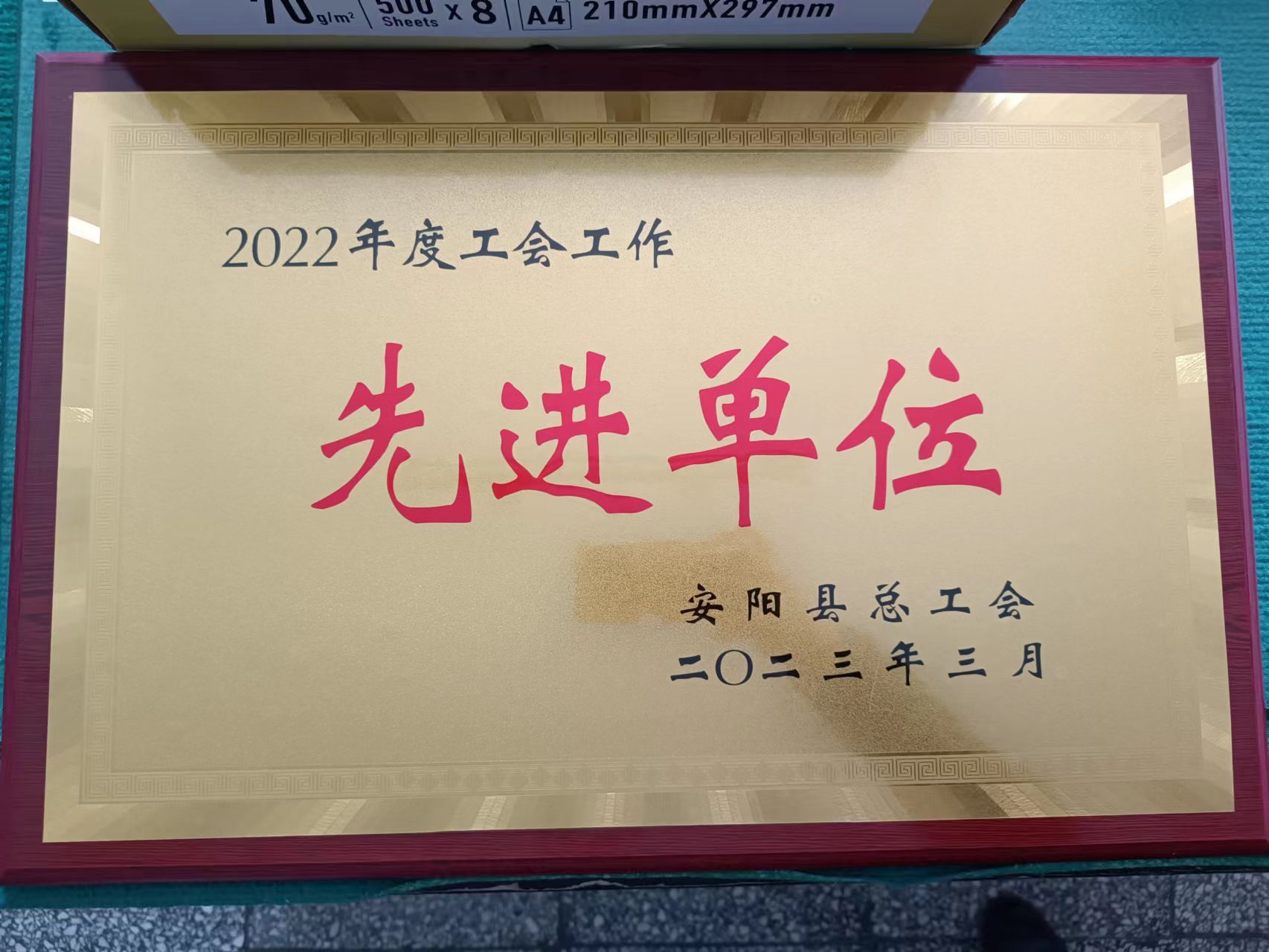 3月29日,公司工會被安陽縣總工會授予2022年度“安陽縣工會先進單位”榮譽稱號。