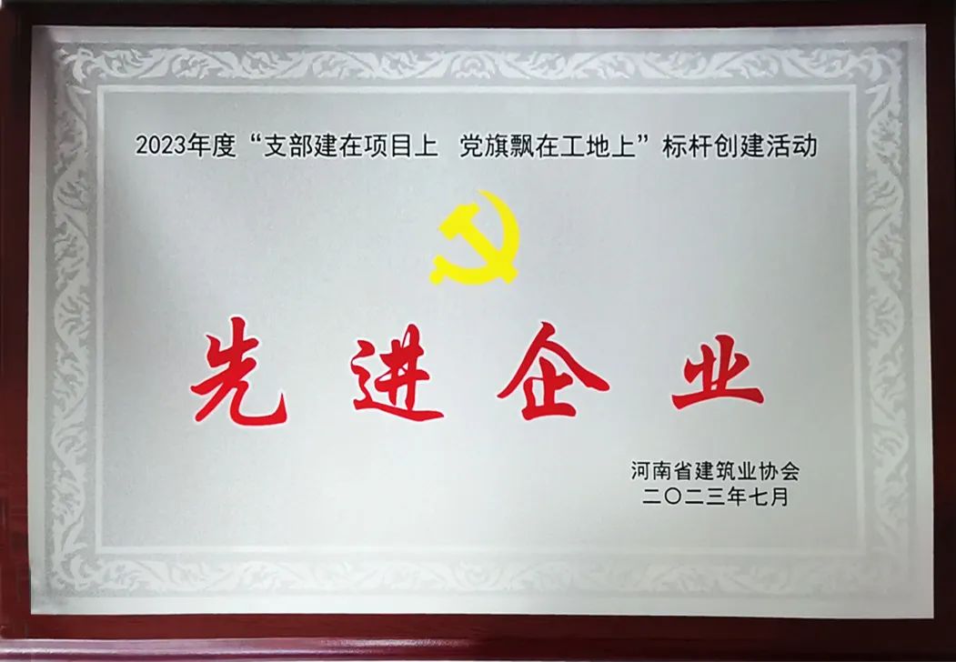 在此次活動中,河南興瑞建設有限公司獲評2023年度“支部建在項目上,黨旗飄在工地上”標桿創(chuàng)建活動先進企業(yè)。