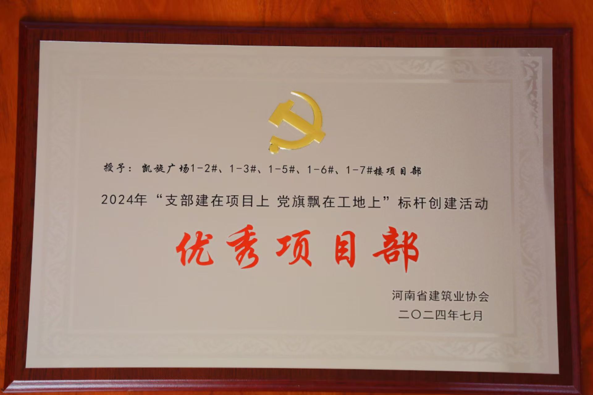近日,河南省建筑業(yè)協(xié)會(huì)公布2024年度“支部建在項(xiàng)目上,黨旗飄在工地上”標(biāo)桿創(chuàng)建評(píng)估結(jié)果公示的通知,鶴壁凱旋廣場1-2#、1-3#、1-5#、1-6#、1-7#樓項(xiàng)目部被評(píng)為“標(biāo)桿創(chuàng)建活動(dòng)優(yōu) 秀項(xiàng)目部”。