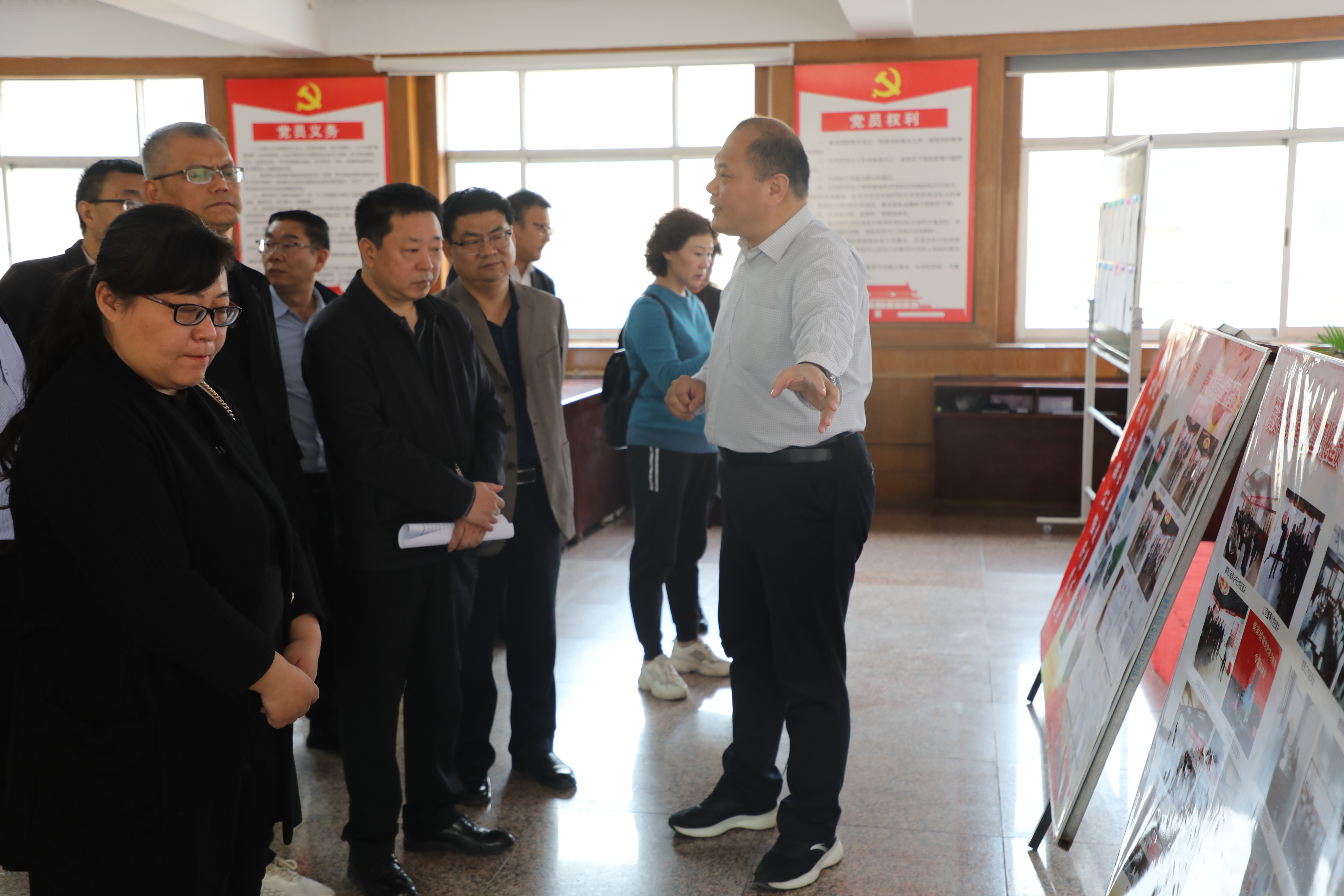 公司董事長(zhǎng)牛敬堂在四樓黨員之家,向觀摩團(tuán)介紹了公司發(fā)展歷程和黨建工作,在三樓會(huì)議室展板前,匯報(bào)了公司在探索民營(yíng)企業(yè)黨建工作和企業(yè)發(fā)展相融合的具體做法、體會(huì)、經(jīng)驗(yàn)和取得成績(jī)。