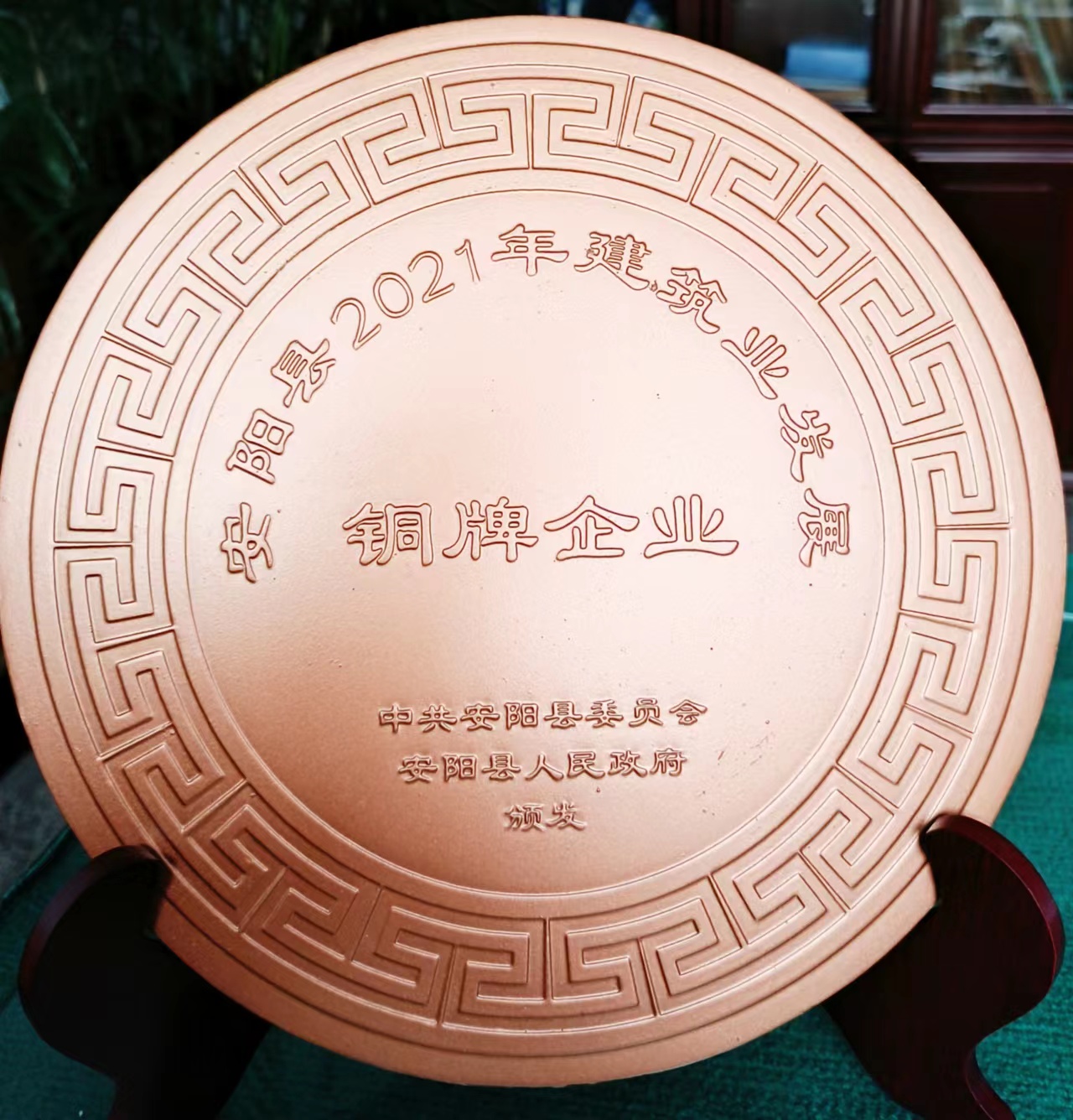 近日,安陽縣2021年度建筑業(yè)發(fā)展金牌、銅牌企業(yè)出爐,公司將銅牌收入囊中。