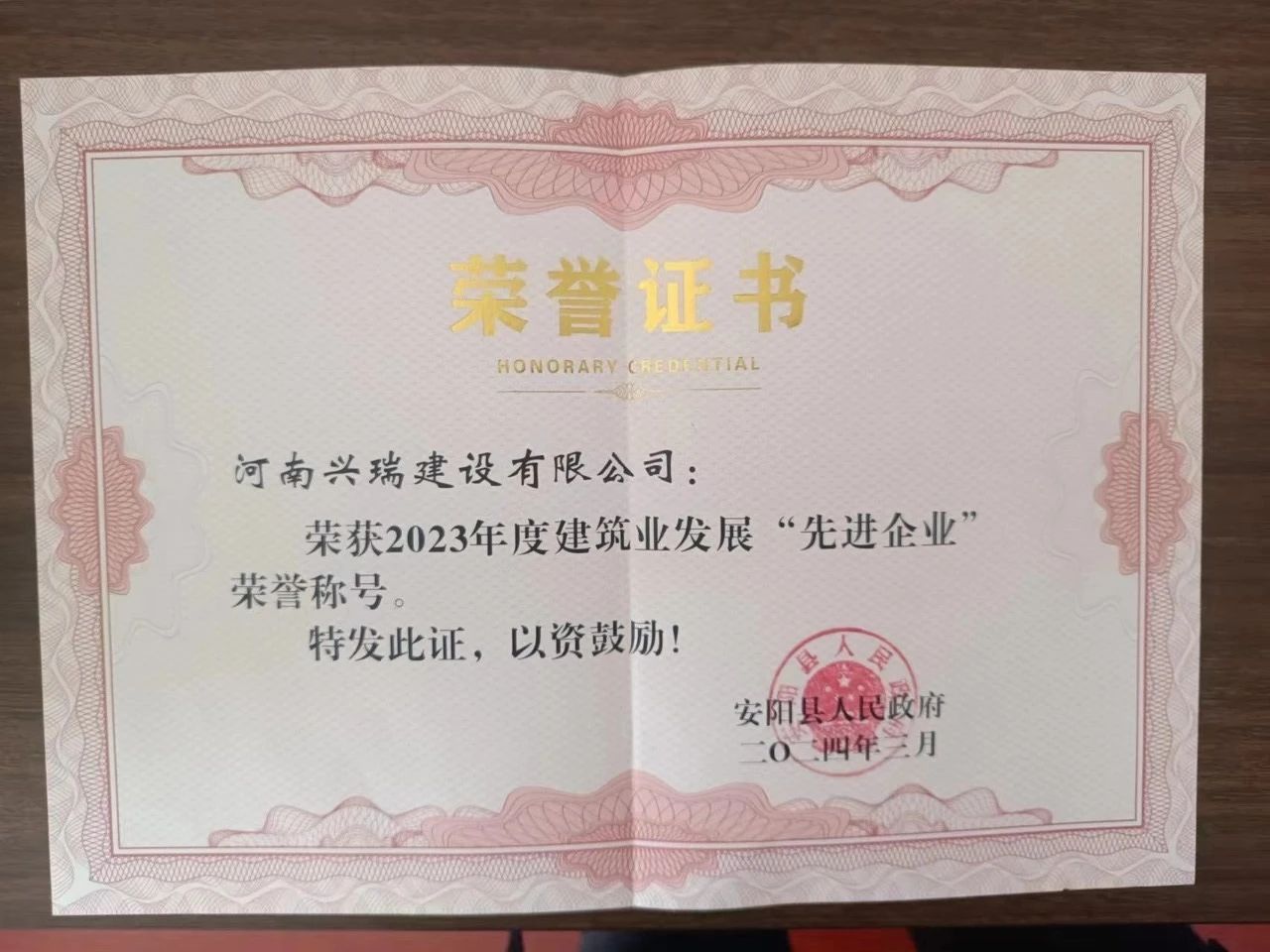 縣委副書記何國峰宣讀了表彰2023年度貢獻突出的15家建筑企業(yè)和15名優(yōu) 秀項目經(jīng)理的決定,其中河南興瑞公司榮獲安陽縣”2023年建筑業(yè)先進企業(yè)“,崔莉莉榮獲安陽縣”優(yōu) 秀項目經(jīng)理。