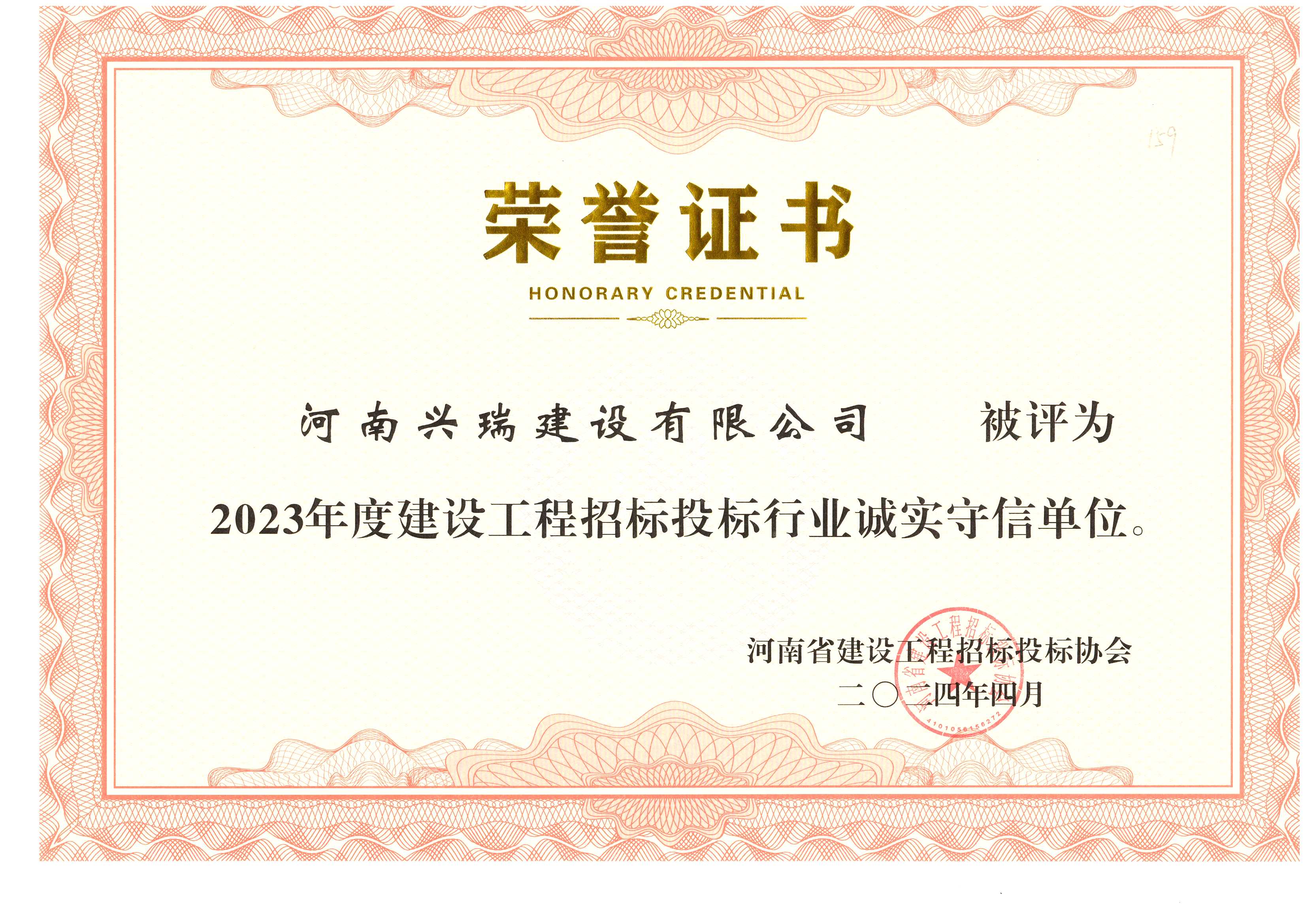 近日,河南省建設(shè)工程招標(biāo)投標(biāo)協(xié)會發(fā)布了《關(guān)于公布2023年度建設(shè)工程招標(biāo)投標(biāo)行業(yè)誠實守信單位的通知》,我公司榮獲河南省招標(biāo)投標(biāo)協(xié)會2023年度“誠實守信單位”榮譽稱號!