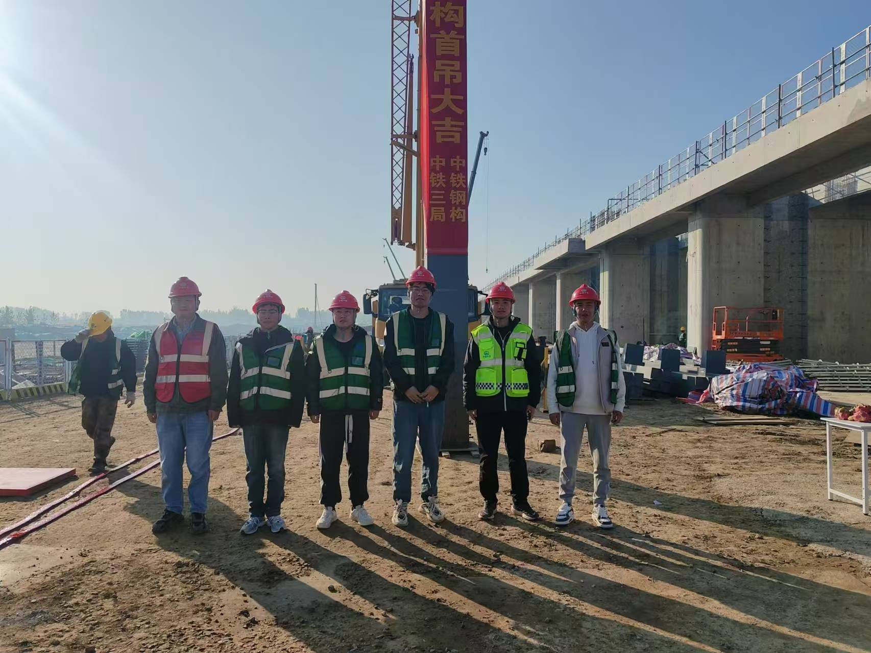 該項(xiàng)目跑步進(jìn)場后,項(xiàng)目團(tuán)隊(duì)負(fù)責(zé)人賈肖楊對吊裝前的各項(xiàng)準(zhǔn)備工作高度重視,他們團(tuán)結(jié)一心、全力以赴、攻堅(jiān)克難,秉承著“起步?jīng)_刺搶開局,全力以赴保履約”的態(tài)度,以“只爭朝夕、大干快上”的熱情,加快推進(jìn)工程建設(shè)進(jìn)度,第 一時間開展工作,多次組織并召開專項(xiàng)會議進(jìn)行精心安排與部署。從現(xiàn)場勘測、施工組織方案的探討,到鋼柱的吊裝方式、吊車的選用以及應(yīng)急預(yù)案等前期工作中的每一個環(huán)節(jié)、每一道工序、每一處細(xì)微之處,都安排了專人進(jìn)行盯控與負(fù)責(zé)。鋼柱順利吊起后,精準(zhǔn)就位,高標(biāo)準(zhǔn)、高效率實(shí)現(xiàn)目標(biāo)節(jié)點(diǎn),充分展現(xiàn)出興瑞團(tuán)隊(duì)這座戰(zhàn)斗堡壘所具備的專 業(yè)能力以及卓 越的履約意識。在大家的通力配合下,在充分的技術(shù)交底和周密的施工計(jì)劃的保障下,順利完成鋼結(jié)構(gòu)首吊。